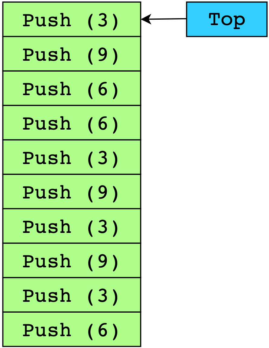 What is the output if three **Pop()** calls are made onto this stack?