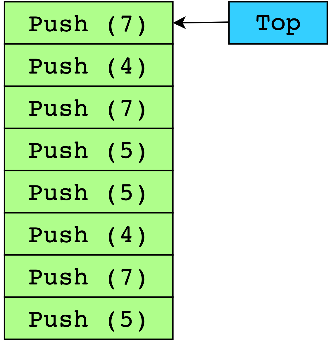 $7$ and $5$ both appear $3$ times in this stack. The number that is close to or equal to the top of the stack is removed first, that is $7$, and then rest of the remaining $3$ numbers are popped.