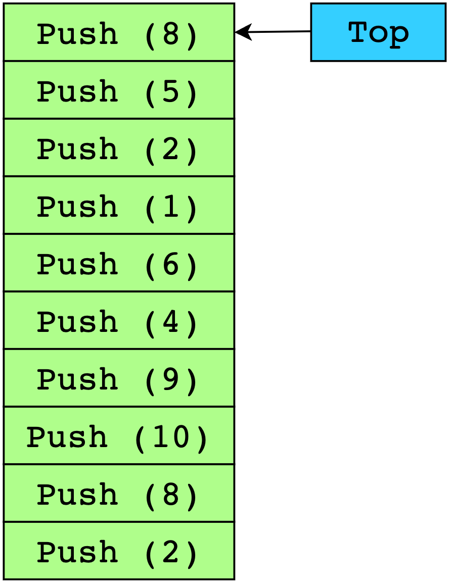 What is the output if four **Pop()** calls are made onto this stack?
