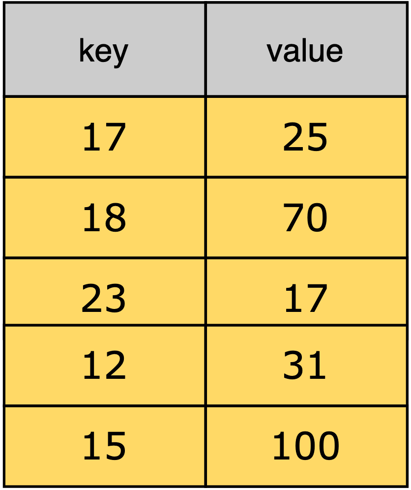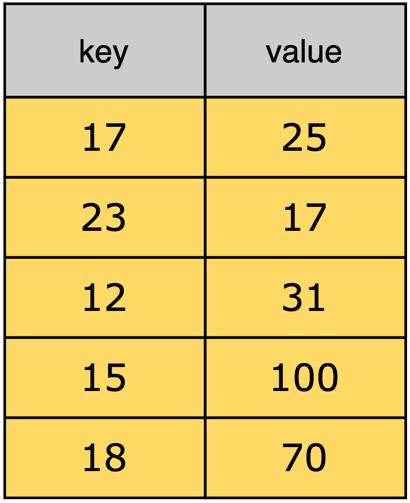 We have a cache containing size 4, so we will first evict the least recently used pair, that is, {17, 25} then we will add the new pair at the end of the dictionary.